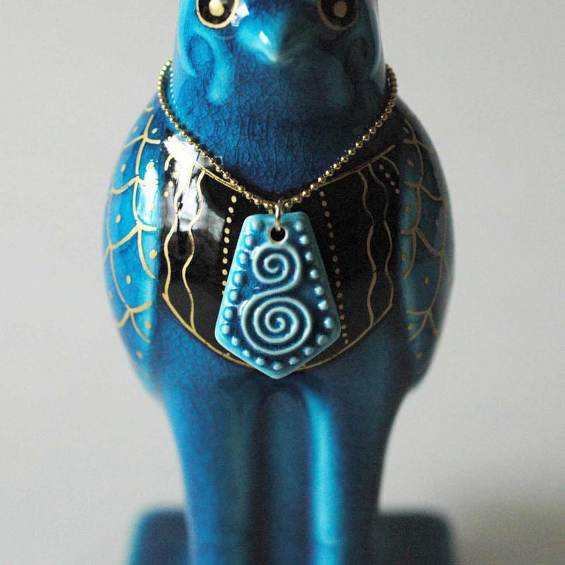 天空と太陽の神として、古代エジプトで最も古くから崇められています。胸元には魂の再生を表すスパイラル(渦巻)のペンダントをつけており、エジプト神話においてホルスは最後王様の目になって人々を守ったとされ、全てを見通す目を持っています。